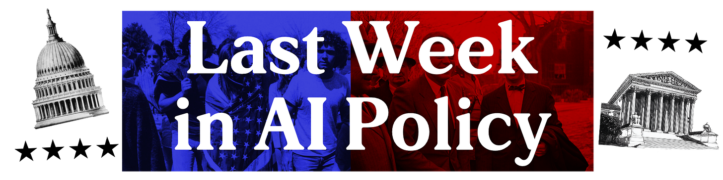Delivered to your inbox every Monday, Last Week in AI Policy is a rundown of the previous week’s happenings in AI policy and governance in America. News, articles, opinion pieces, and more, to bring you up to speed for the week ahead.